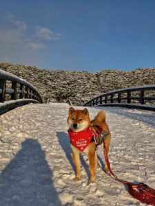 錦帯橋の雪景色だ、ワン!(1月3日)