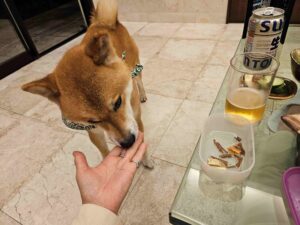 「結果いつもの焼き芋と鶏肉ジャーキー。」