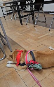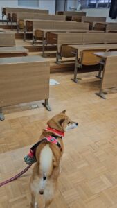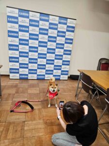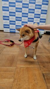 「岩国商業高等学校へやって来た、ワン!」