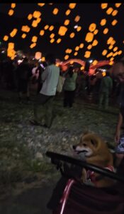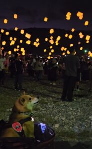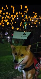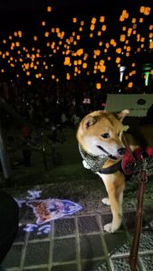 「『吉川広家公』400年祭のスカイランタン。僕も願い事を書いたよ。」