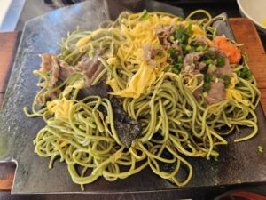 「下船の後、瓦そばを食べに行った。お店『うどん茶屋橙々亭』の社長さん。」