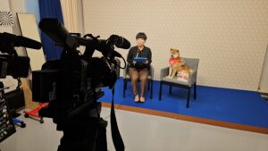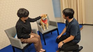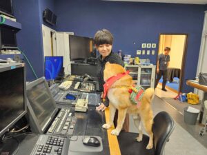 「アナウンサーさんと打ち合わせする、ワン!」