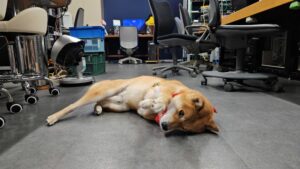 「まだかなぁ、寝て待つ、ワン!」