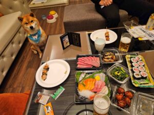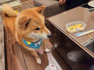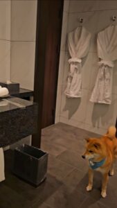 「週末は、お泊りでお出かけした、ワン!」