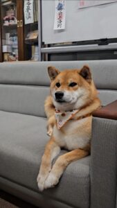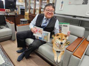 「嵯峨中学校へポスターカレンダーをお届けした、ワン!」