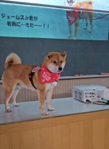 「登壇のリハーサルだ、ワン!」