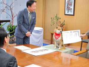 岩国市長へ動物愛護義援金目録をお届けした、ワン!(11月10日)
