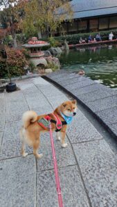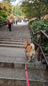 「勝尾寺へ、紅葉を見に来た、ワン!」