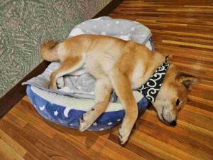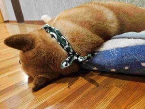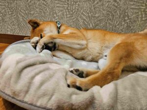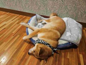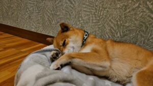 「今度は落ちていないよ。お手手でお顔を隠す、ワン。」