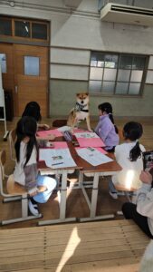 「嵐山小学校の『総合的学習の時間』に呼ばれて行ったよ。」