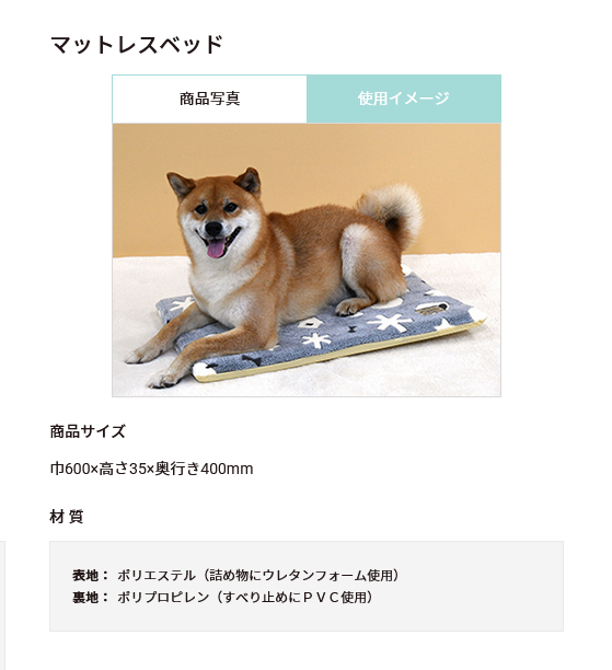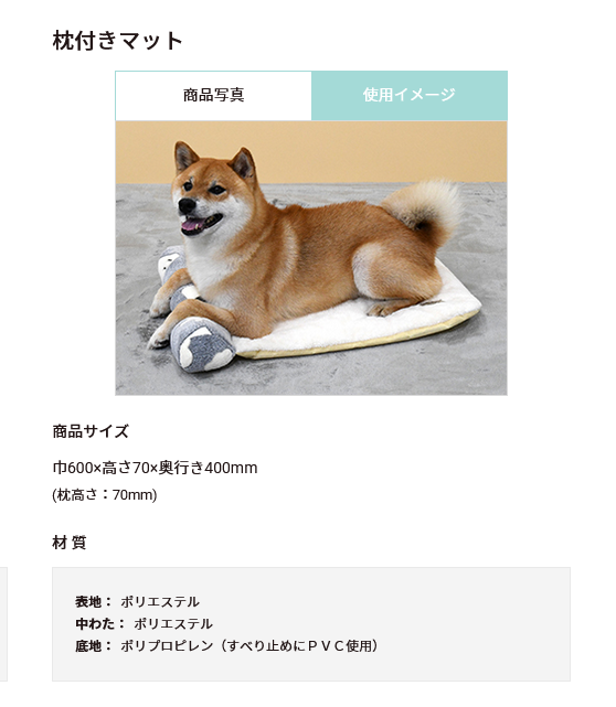 『季節のおすすめ商品』の犬・猫カテゴリに掲載されており、商品が表示されていますので、使用イメージをクリックすると